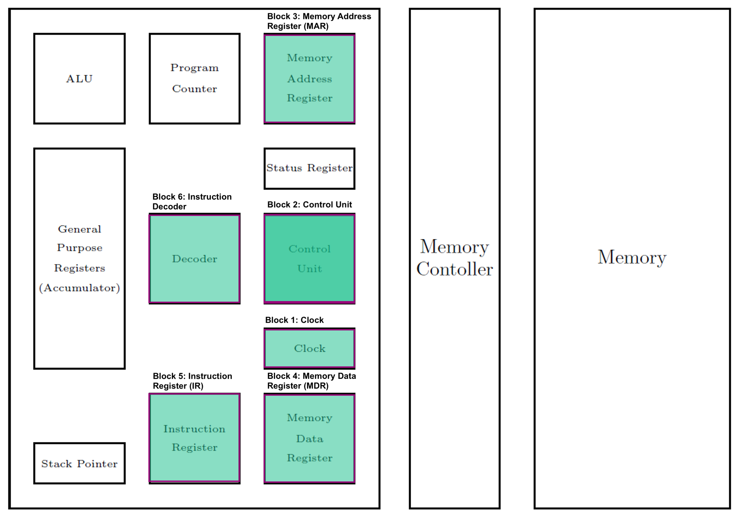 Figure 3: Simplified block diagram showing the major components of a microcontroller
